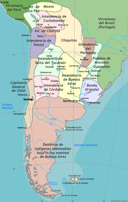 El siguiente es un mapa del Virreinato del Río de la Plata.
